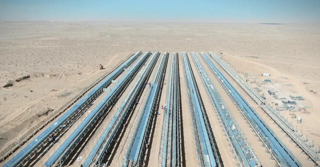 清晨,当第一缕阳光终于刺破寒雾,金色的光瀑漫过戈壁,数百万块光伏板迎着新岁阳光,折射出的光斑在冻硬的沙砾上流淌。